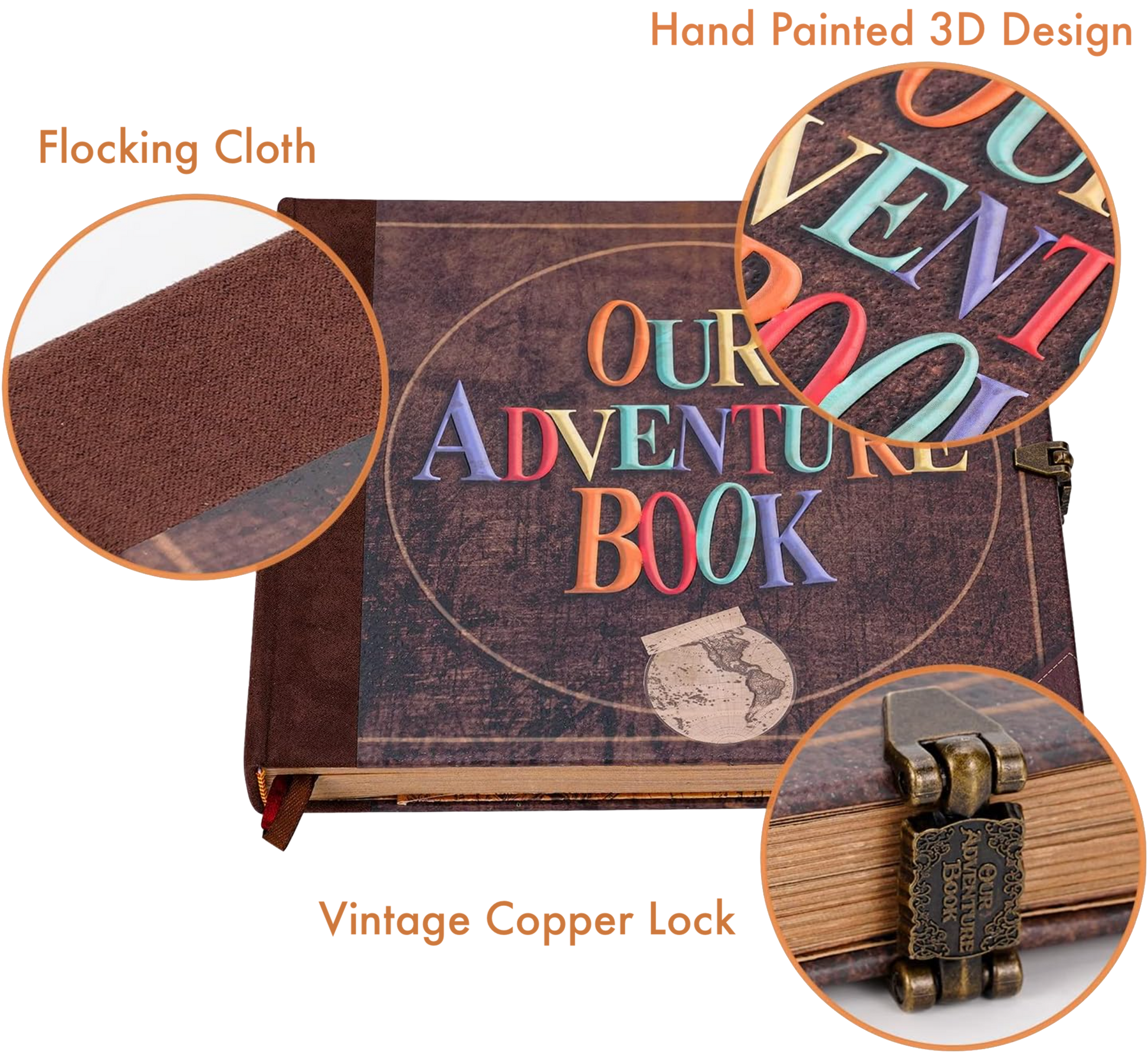 - Elegant Leather Design: Leather cover with convex "Our Adventure Book" text and genuine leather strip for a unique, tactile experience.